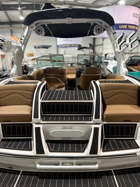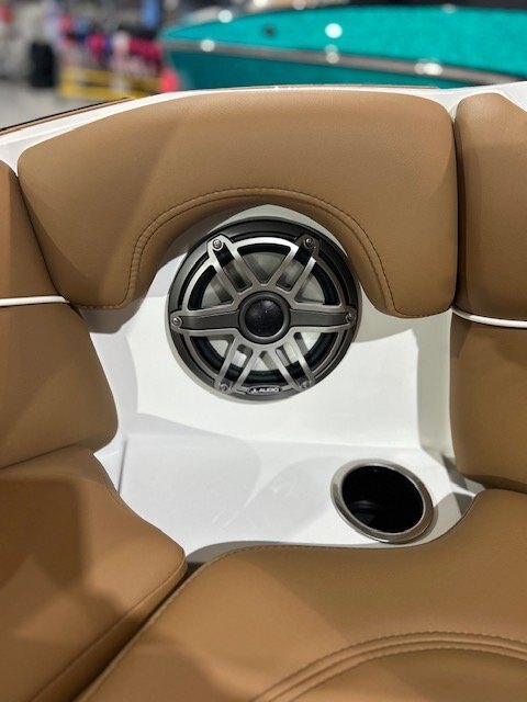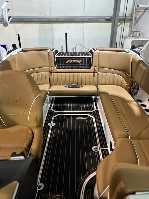 STANDARD FEATURES Surf Pipe Plug-n-Play Ballast Surf System Mission Power Tower Raptor 400 RGB Theatre Lighting 5.5” Screen 7" Screen Surf Racks Package A Exile Audio 8.8” Cockpit Speakers 12” Subwoofer w/1000watt Amp Non-Slip Padded Flooring (2-layer) Non-Slip Padding Under Storage (Alpha only) Powedercoat Options Sound Dampening Pass-Thru Wind Dam AOxMB Ice Chest Transom Remote Shipping Cover & Prep