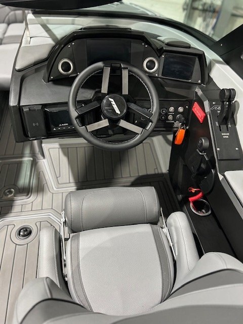 The B52 21 Alpha features a distinctive rolling wave-like top rail, enhancing both its visual appeal and functionality during docking or rider pickup. Its interior is crafted with top-grade materials, offering exceptional comfort and durability. The boat’s deep V hull design, combined with its ballast system of 3,050lbs and surf tabs, delivers impressive wake performance for both surfing and wakeboarding enthusiasts.