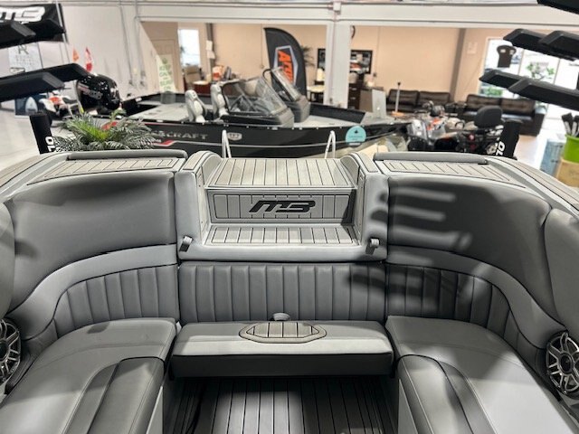 This model has storage galore. Plenty of room for up to 14 people means hours of summer water sports and fun for friends and family. Our website link to MB Sports allows you the luxury of designing your own unique MB Boat. Explore the endless possibilities and combinations of Colours, Upholstery, and Features. Call or come on down to Olympic Marine & Recreation – Airdrie and visit the showroom and meet with Our MB Sport Specialists about your next boat.