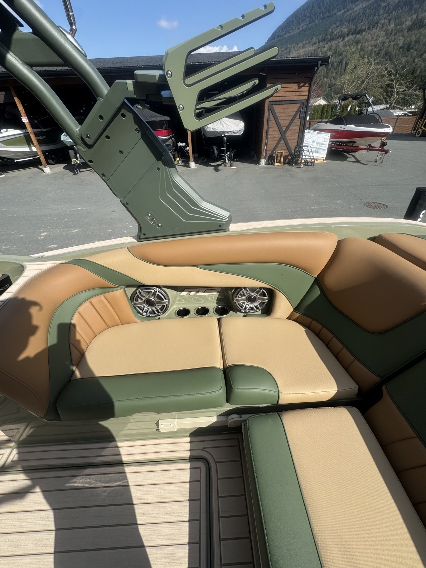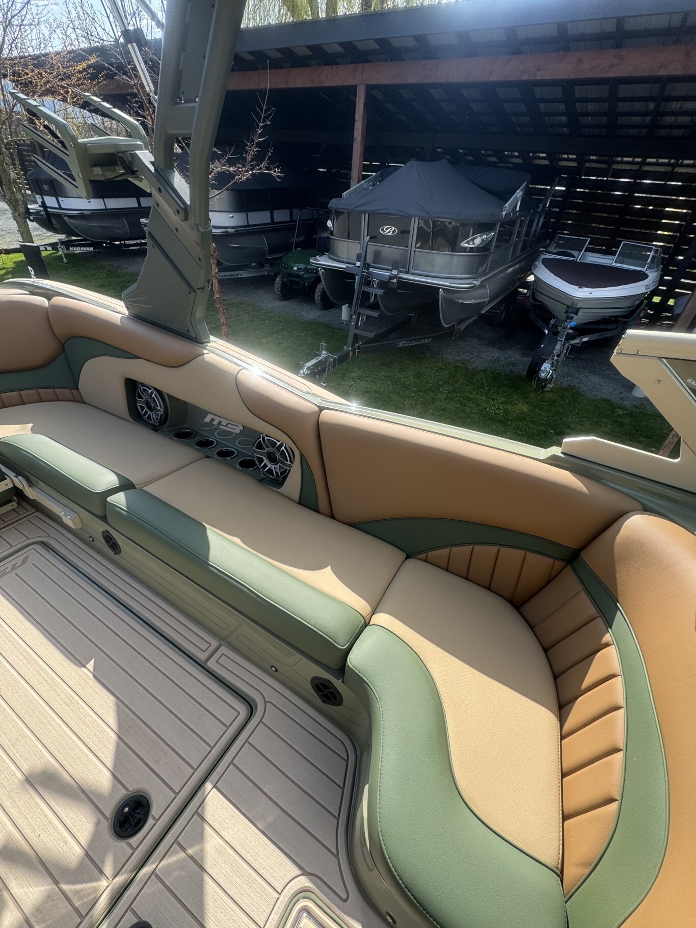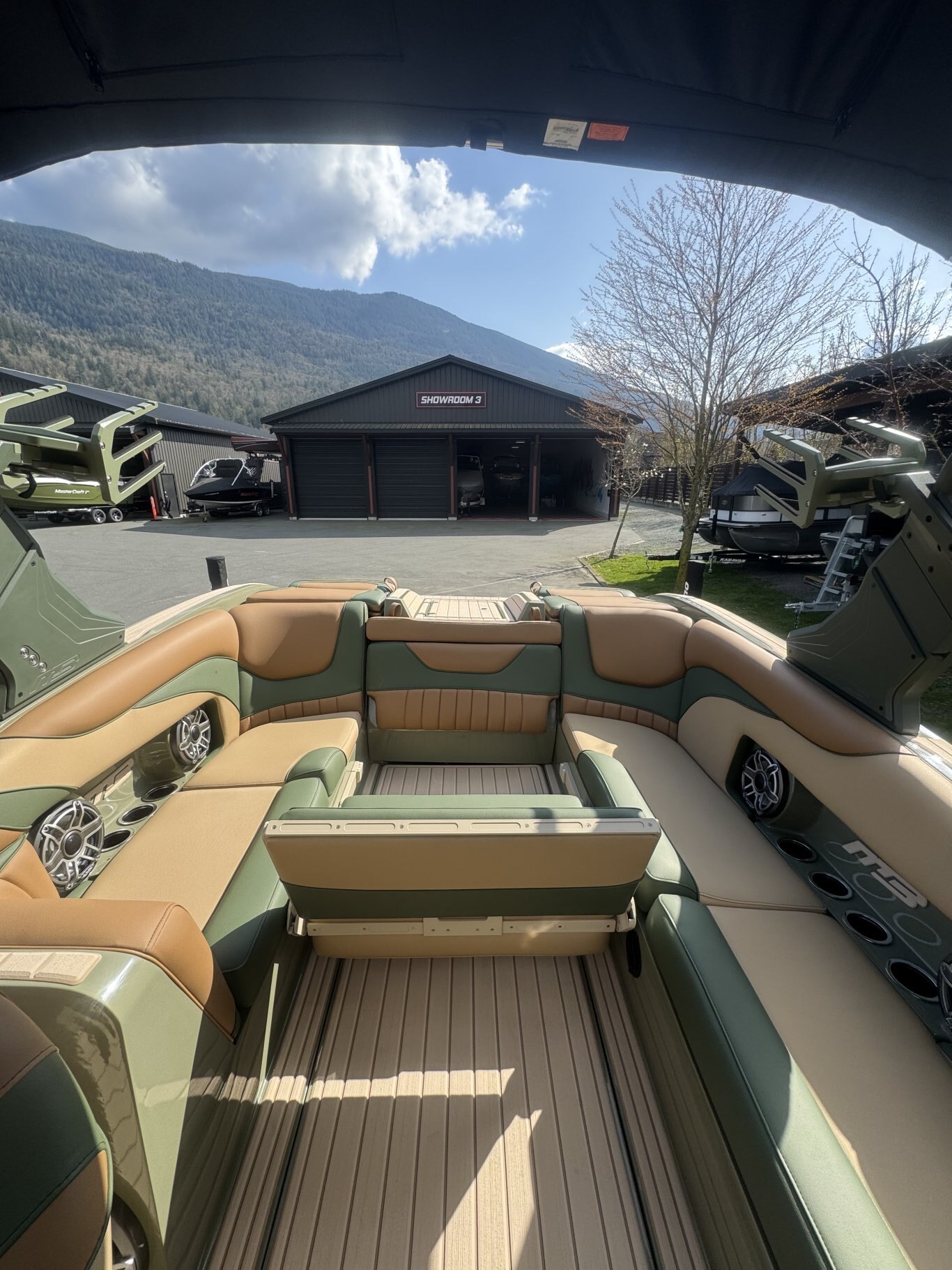 With MB’s signature deep-v hull, integrated surf system, and plenty of ballast, the B52 23 Alpha delivers clean, customizable wakes and waves for all skill levels, from beginners to seasoned riders. The layout is smart, spacious, and designed for all-day comfort, featuring premium upholstery, upgraded tech, and an intuitive helm.
