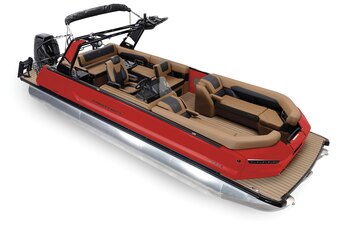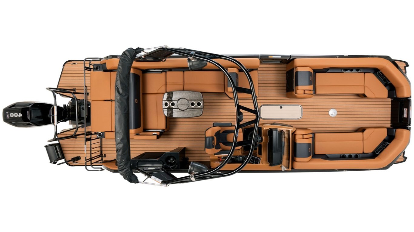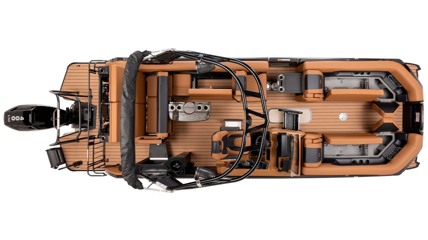 • Sport Edition including premium upholstery textured vinyl and LED lighting on floor, bimini top, pontoon logs, speakers, and fixed cup holders