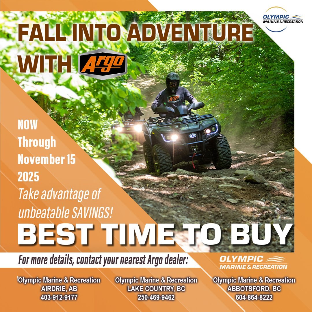 Now through November 15th, take advantage of unbeatable savings during the Fall Into Adventure with ARGO Sale at Olympic Marine & Recreation. Whether it’s tackling trails, mud, or snow, ARGO delivers the ultimate off-road experience — and there’s never been a better time to buy!