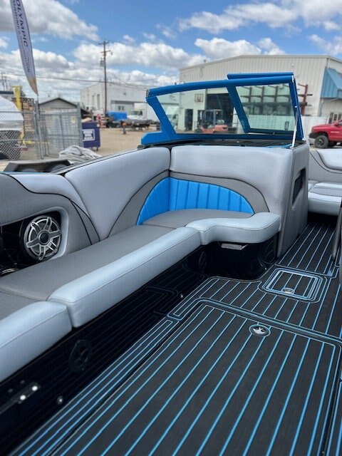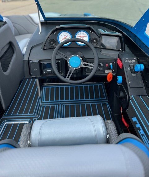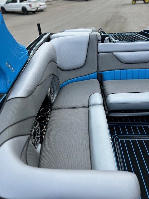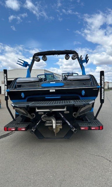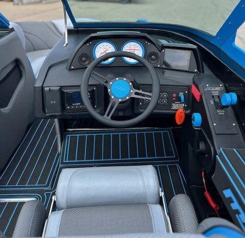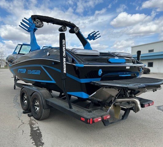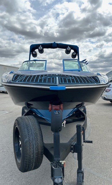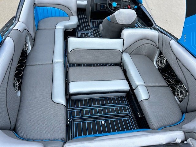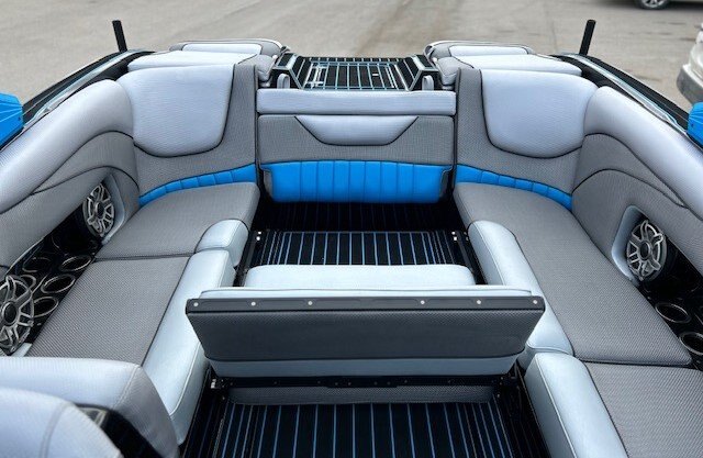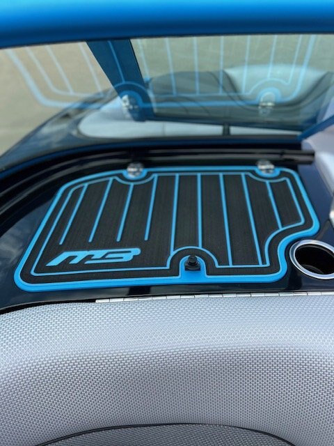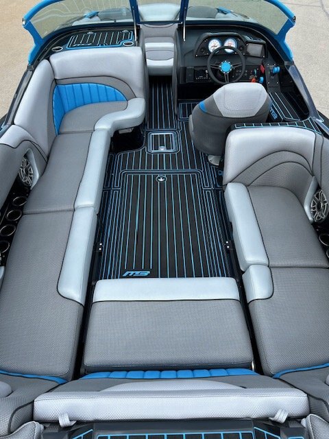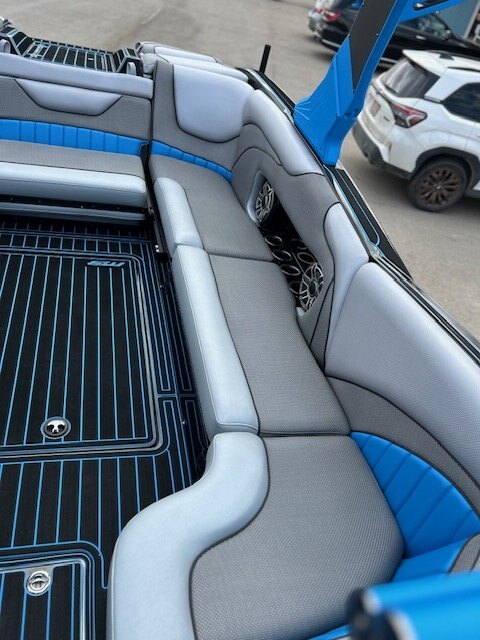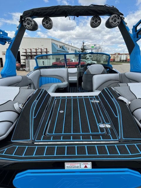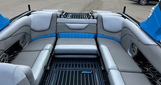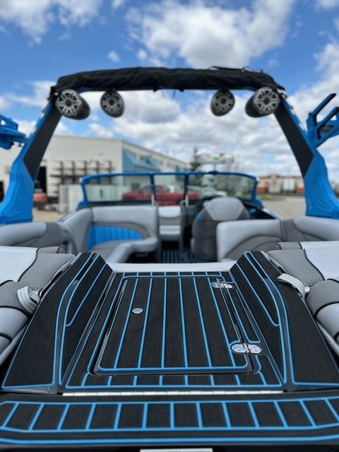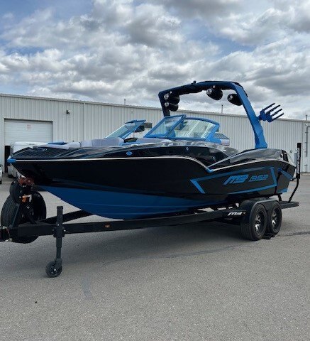 Boat Options Power Tower Upgraded Board Racks w/ Tower (PTM) - (Vapour Blue) Upgraded Screen W/ Speakers MB Switch Surf W/ Cav Plate Ballast - (Rear and Bow) Plug and Play - 2200lbs Subfloor - 2550lbs High Altitude Prop - 15X12.50 - .075 Pro Indmar Raptor 440 6.2L 398HP Flooring - Gator Step Plank Kit - Two Colour Option Top - Black Bottom - Electric Blue Surf Lighting Docking Lights JL Audio 12” Subwoofer Upgrade (Replaces 10” Sub) JL Audio 8.8” Cockpit Speakers (Cockpit) JL Audio 6” Bow Speakers JL Audio 5Ch Amp JL Audio Transom Remote RGB Theatre Lighting Heater - Cabin (2 Snorkels) Heater - Drivers Seat Additional Pair Cleats Hatch Runway Trailer Hooks Hinged Seating Swim Step Ladder Surf Pipe Fender Clips Powder Coat - Frame Vapour Blue Powder Coat - Mirror/Wing/Racks Mirror - Vapour Blue Wings - Vapour Blue Racks - Vapour Blue Powder Coat - Interior Main - Jet Black Accent - Vapour Blue Other - Vapour Blue Powder Coat - Exterior - Logo MB / Tomcat Base - Jet Black Insert - Vapour Blue Other - Vapour Blue Powder Coat - Tower Main - Vapour Blue Panels - Jet Black Base - Vapour Blue Powder Coat - Transom - No Colour