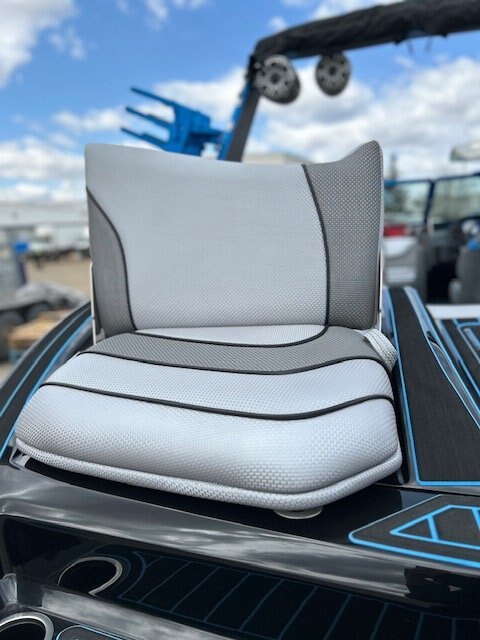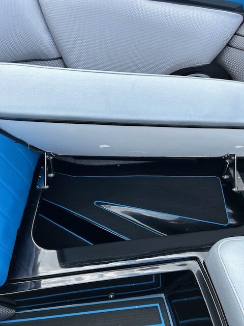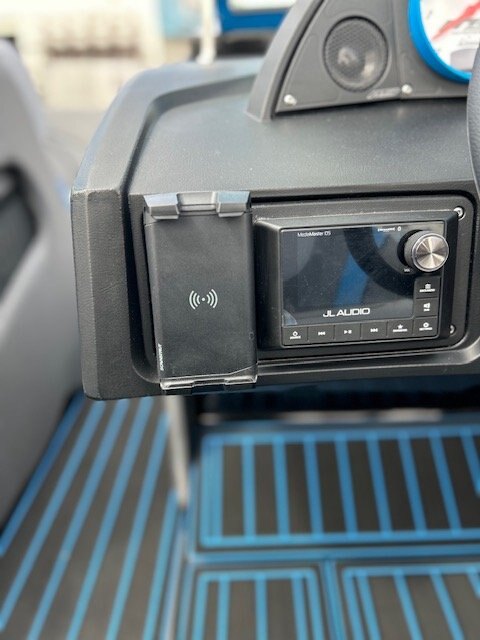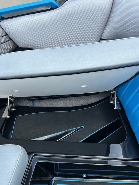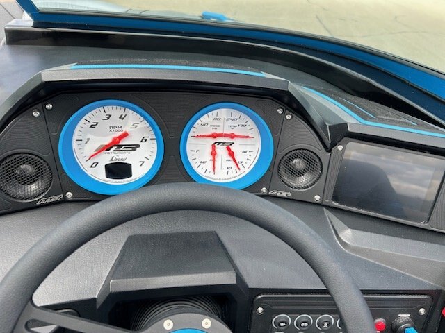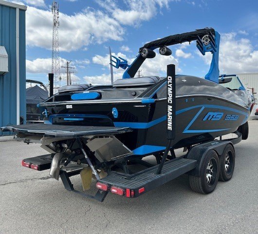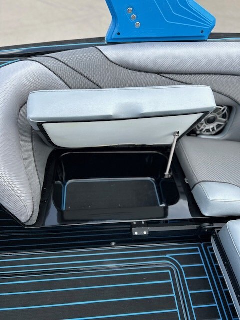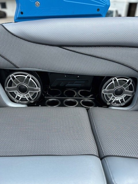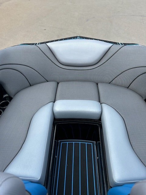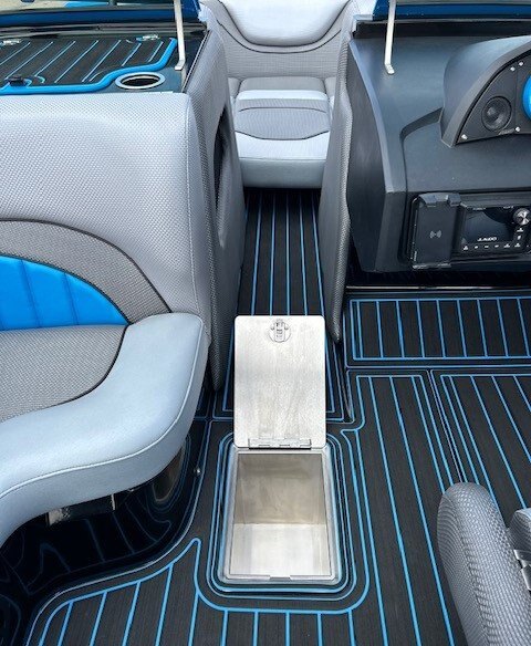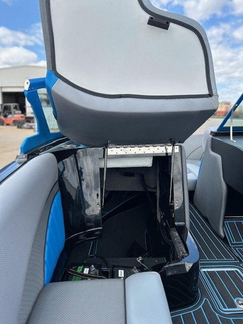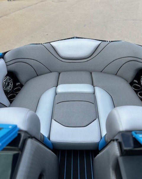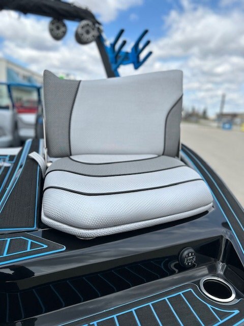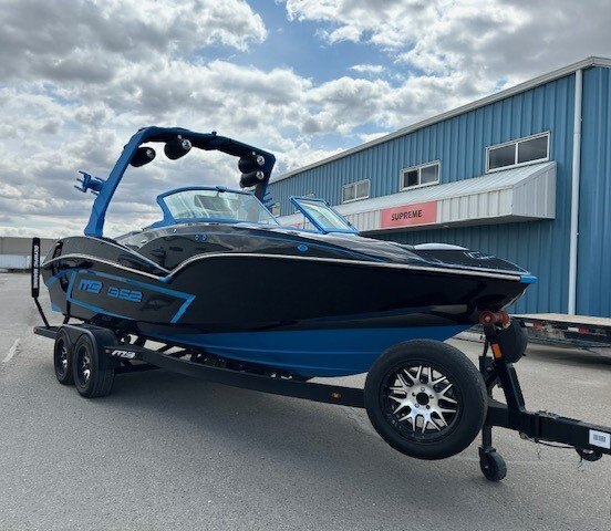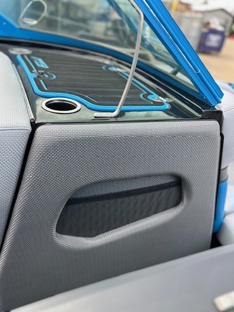 Boat Options Power Tower Upgraded Board Racks w/ Tower (PTM) - (Vapour Blue) Upgraded Screen W/ Speakers MB Switch Surf W/ Cav Plate Ballast - (Rear and Bow) Plug and Play - 2200lbs Subfloor - 2550lbs High Altitude Prop - 15X12.50 - .075 Pro Indmar Raptor 440 6.2L 398HP Flooring - Gator Step Plank Kit - Two Colour Option Top - Black Bottom - Electric Blue Surf Lighting Docking Lights JL Audio 12” Subwoofer Upgrade (Replaces 10” Sub) JL Audio 8.8” Cockpit Speakers (Cockpit) JL Audio 6” Bow Speakers JL Audio 5Ch Amp JL Audio Transom Remote RGB Theatre Lighting Heater - Cabin (2 Snorkels) Heater - Drivers Seat Additional Pair Cleats Hatch Runway Trailer Hooks Hinged Seating Swim Step Ladder Surf Pipe Fender Clips Powder Coat - Frame Vapour Blue Powder Coat - Mirror/Wing/Racks Mirror - Vapour Blue Wings - Vapour Blue Racks - Vapour Blue Powder Coat - Interior Main - Jet Black Accent - Vapour Blue Other - Vapour Blue Powder Coat - Exterior - Logo MB / Tomcat Base - Jet Black Insert - Vapour Blue Other - Vapour Blue Powder Coat - Tower Main - Vapour Blue Panels - Jet Black Base - Vapour Blue Powder Coat - Transom - No Colour