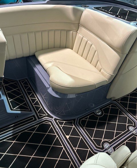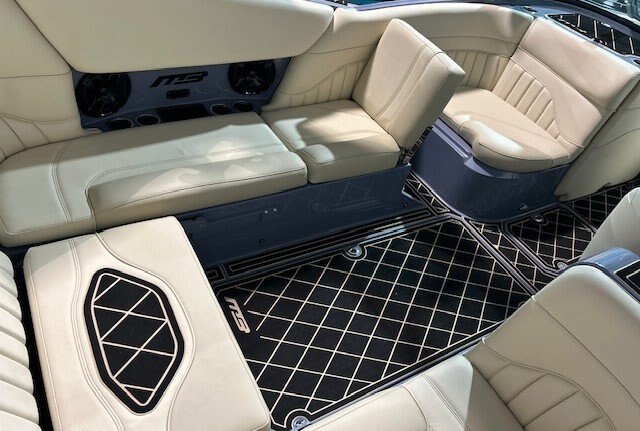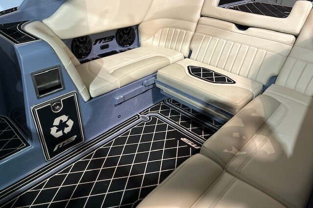 Surf Pipe Plug-n-Play Ballast Surf System Mission Power Tower Raptor 575 Supercharged RGB Theatre Lighting 5.5” Screen 7" Screen Surf Racks Package A Exile Audio 8.8” Cockpit Speakers 12” Subwoofer w/1000watt Amp Non-Slip Padded Flooring (2-layer) Non-Slip Padding Under Storage (Alpha only) Powedercoat Options Sound Dampening Pass-Thru Wind Dam Built In-Trash Can AOxMB Ice Chest Transom Remote
