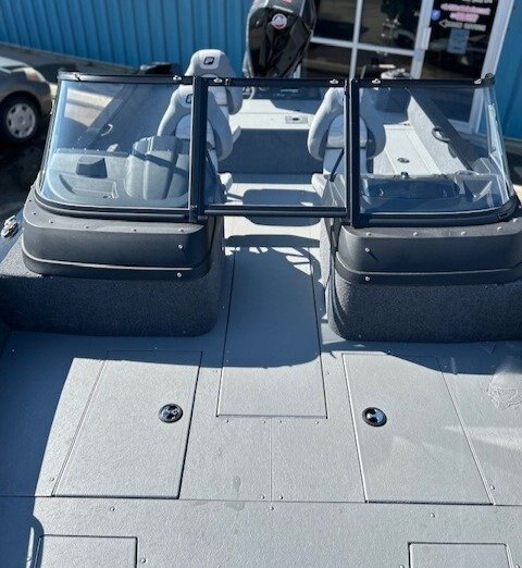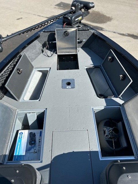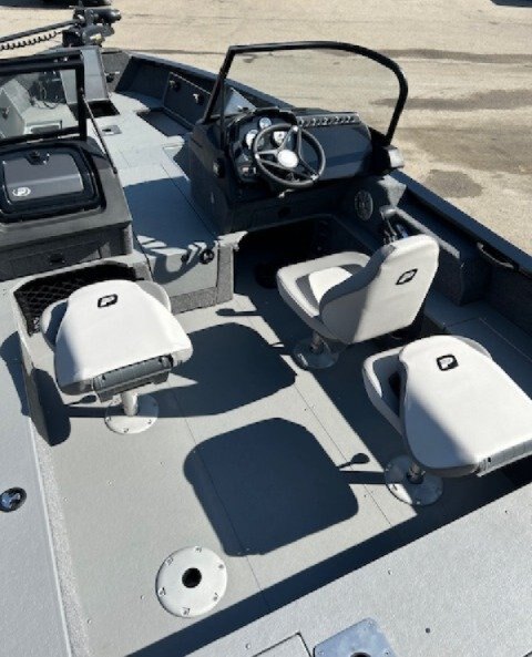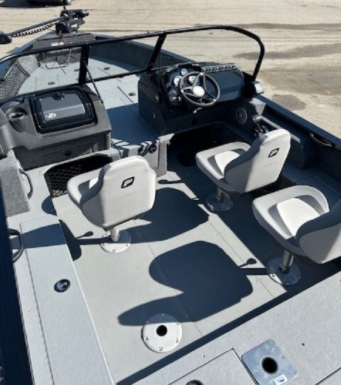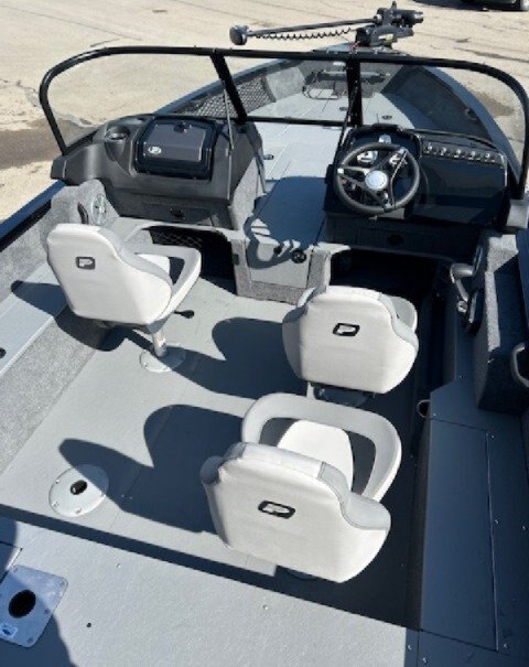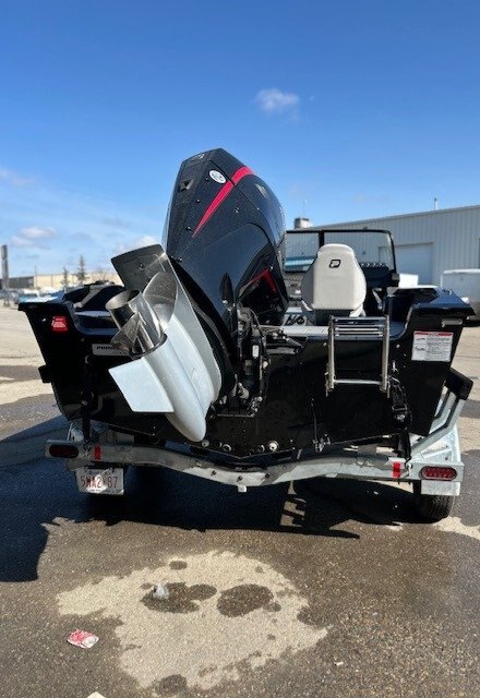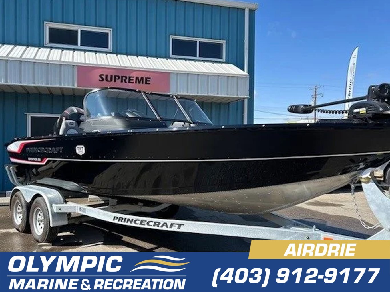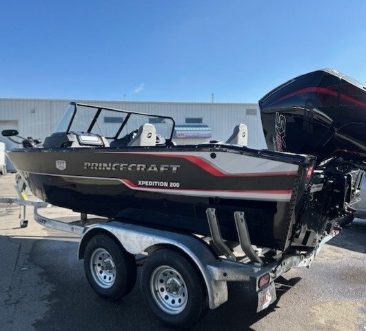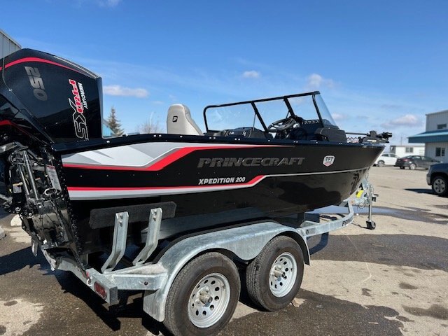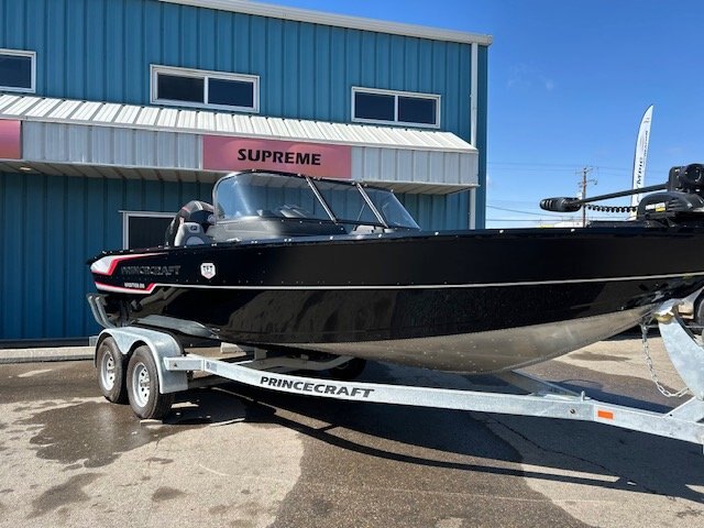 2-tone urethane exterior paint (gloss and matte black finish) with decorative decal and 3D Princecraft black chrome signature