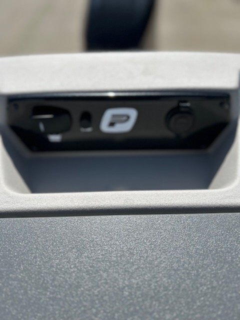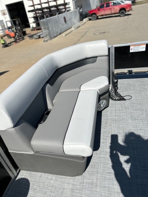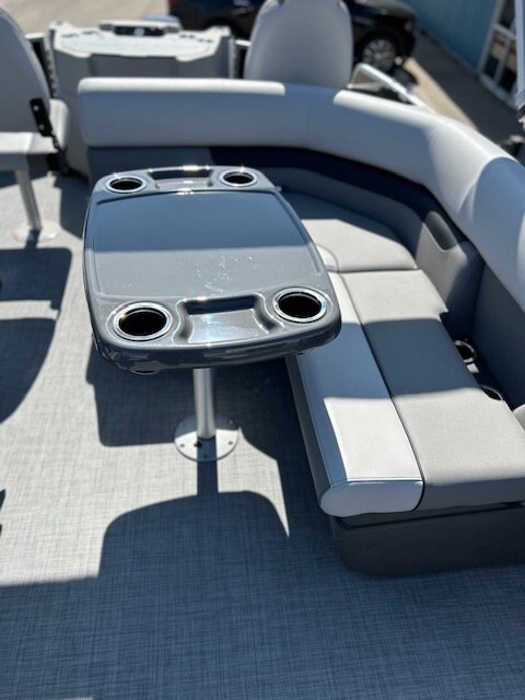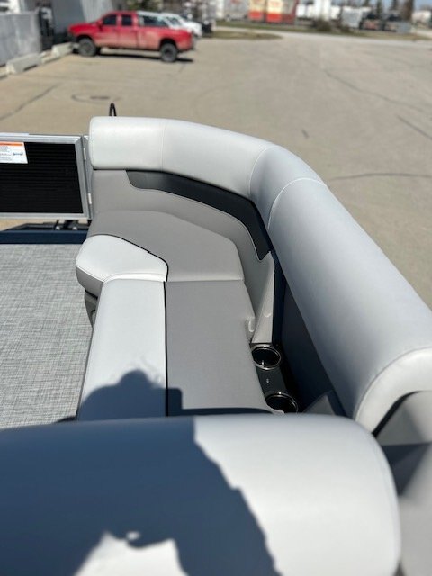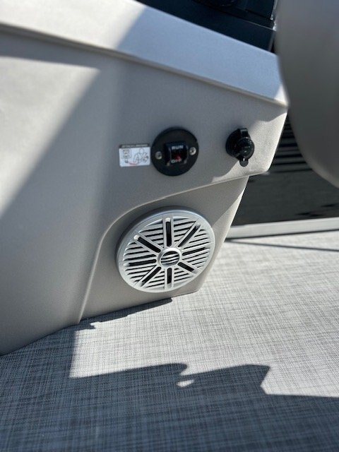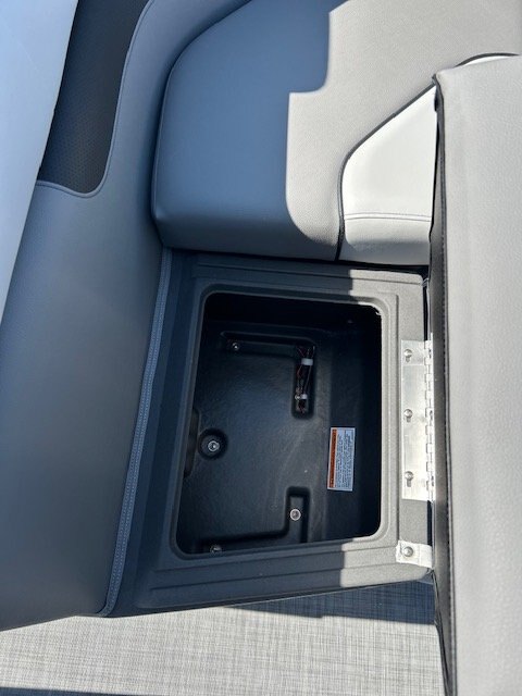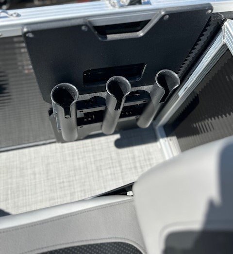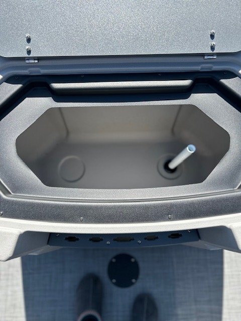 Fishing station including 33" long builtin electric-filled aerated stern livewell (83 L / 22 U.S. gal.), tool holder, fish ruler, cup-holders and USB plugs