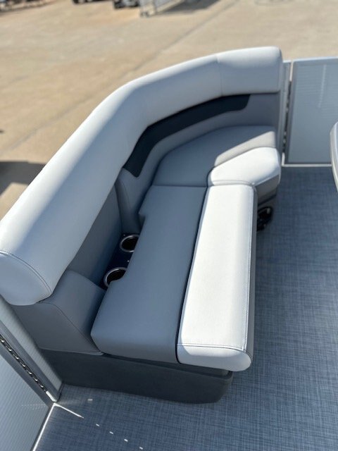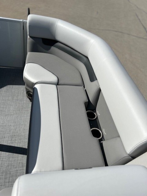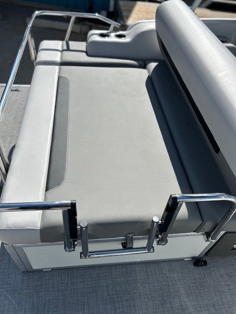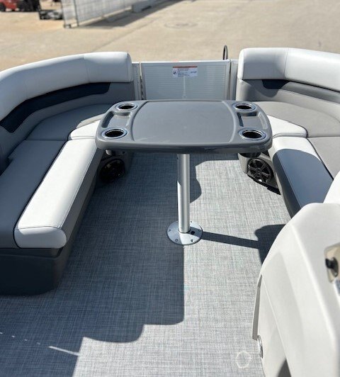 RL design including captain passenger seat, multipositions seat module, sundeck with 2 position adjustable backrest,, large snack table, and storage under all seats