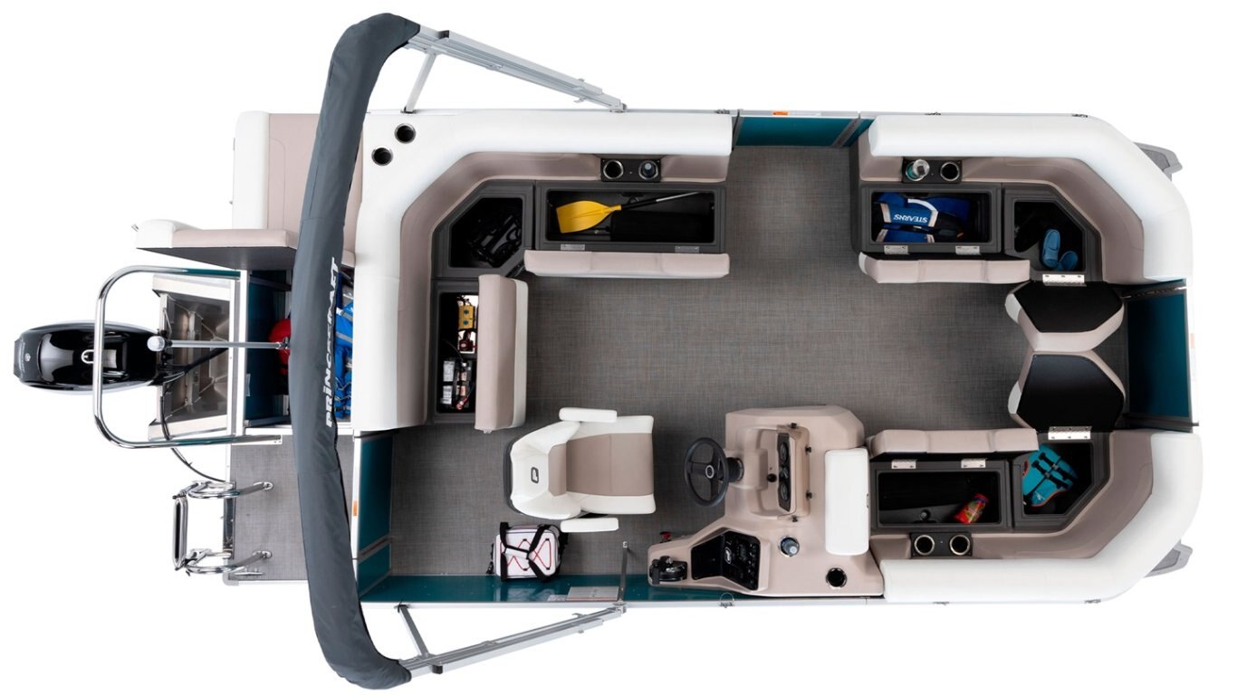 • Altitude package includes: 3D Princecraft® black chrome logo on both sides and front door, LED docking lights, deluxe driver seat (if applicable passenger captain's chair with slider), LED lights under driver helm and furniture