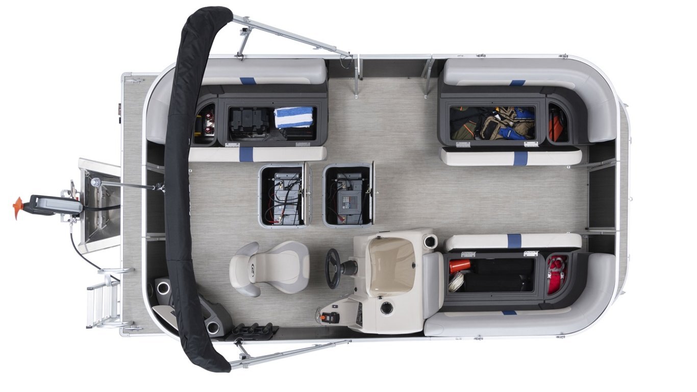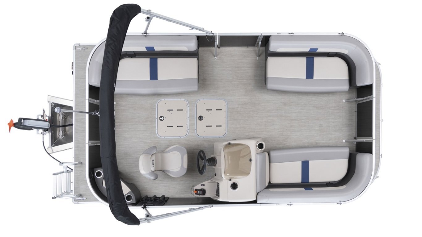 • Graphic package includes: Blue metallic stripe all around the pontoon