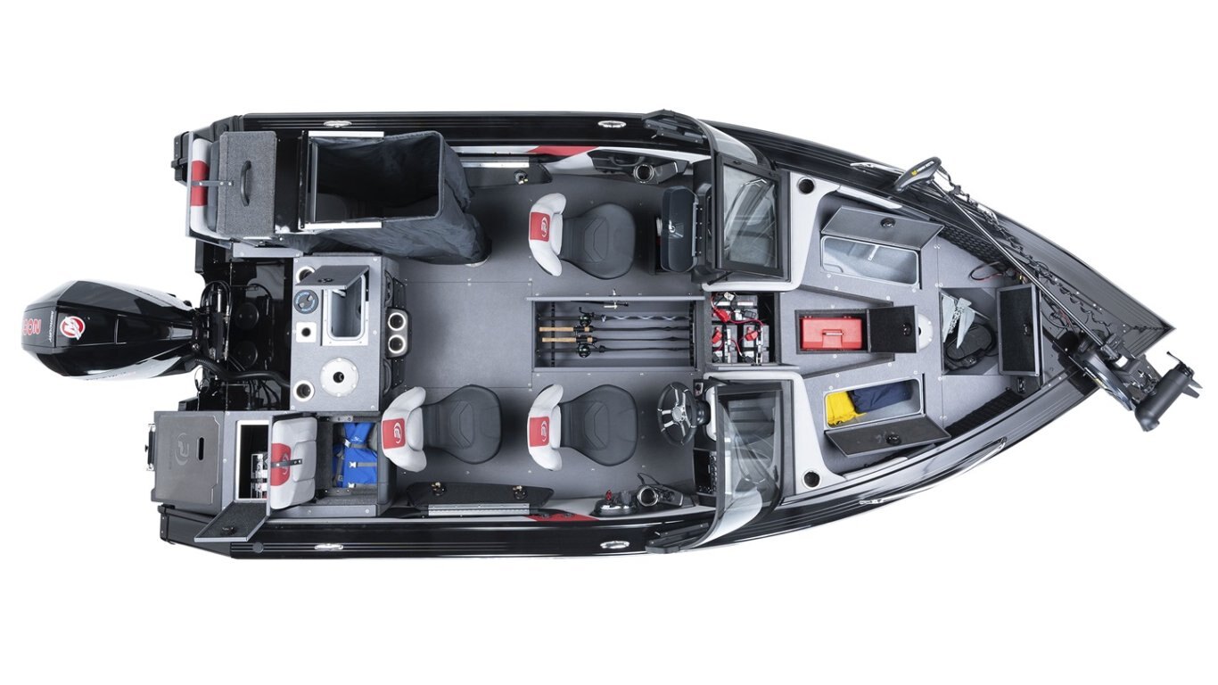 Pop-up privacy enclosure in stern casting platform All the flat surfaces are covered with anti-skid marine grade vinyl PrinceTrak System: extrusion allowing onboard tool fixing Coaming pads Automatic electric bilge pump Stainless steel bow grab rails Navigation lights On-floor top storage ACS system: Air intake allowing airflow of the in-floor rod organizer Factory-installed snap fasteners for canvas enclosure and trailer cover options LED docking lights Interior light(s) and ambient LED 5 handles 4 battery holders Stern telescopic boarding ladder with boarding platform and anti-skid carpet Battery switch to shut down the electric system Transducer(s) mounting plate Pressure-treated wood floor Cockpit quick drain to bilge