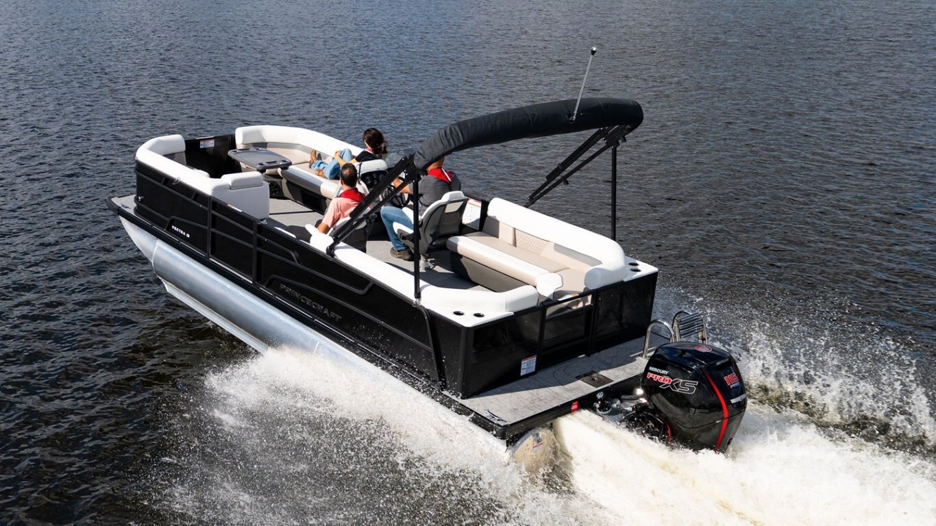 • Altitude package includes: 3D Princecraft® black chrome logo on both sides and front door, LED docking lights, deluxe driver seat (if applicable passenger captain's chair with slider), LED lights under driver helm and furniture