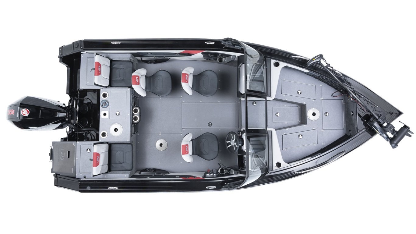 Pop-up privacy enclosure in stern casting platform All the flat surfaces are covered with anti-skid marine grade vinyl PrinceTrak System: extrusion allowing onboard tool fixing Coaming pads Automatic electric bilge pump Stainless steel bow grab rails Navigation lights On-floor top storage ACS system: Air intake allowing airflow of the in-floor rod organizer Factory-installed snap fasteners for canvas enclosure and trailer cover options LED docking lights Interior light(s) and ambient LED 5 handles 4 battery holders Stern telescopic boarding ladder with boarding platform and anti-skid carpet Battery switch to shut down the electric system Transducer(s) mounting plate Pressure-treated wood floor Cockpit quick drain to bilge