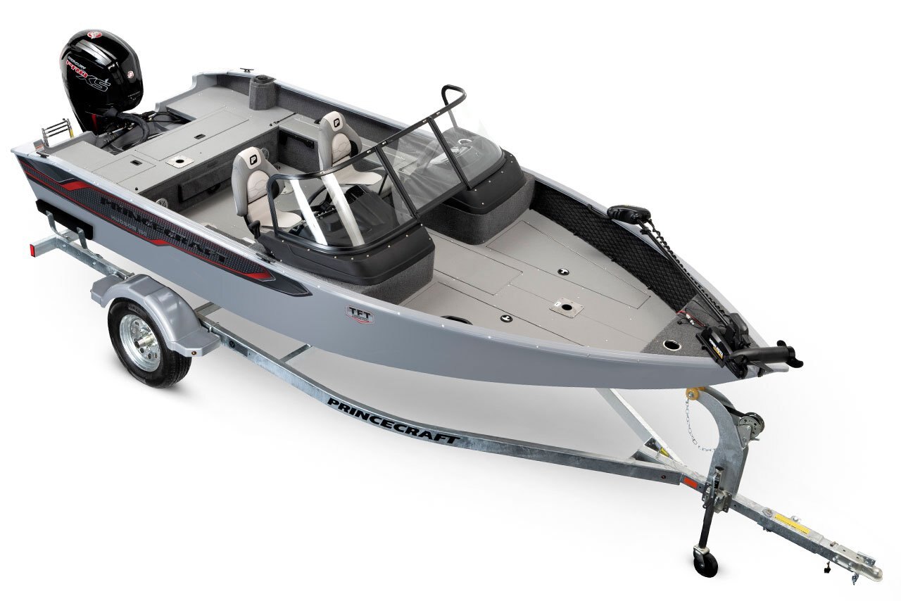 • Tournament fishing TFT package with special decals includes: Your choice of exterior color, 3D Princecraft® black chrome logo), insulated livewells, additional bow livewell, 4 flip cleats, tournament Fishing Team graphics, fish ruler, deluxe seat exchange, flat seat bases on fishing platforms, quick rod storage, nets addition under consoles and on bow platform
