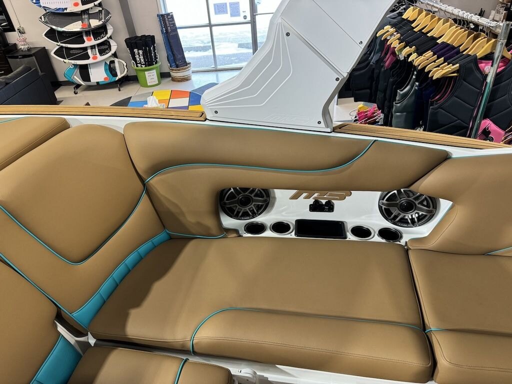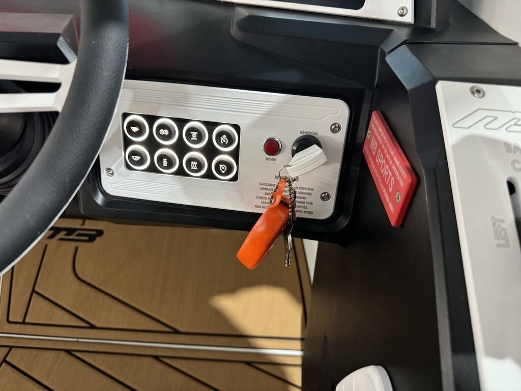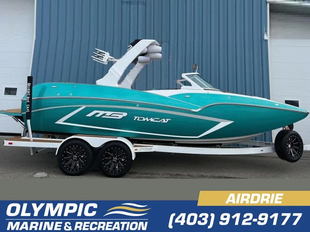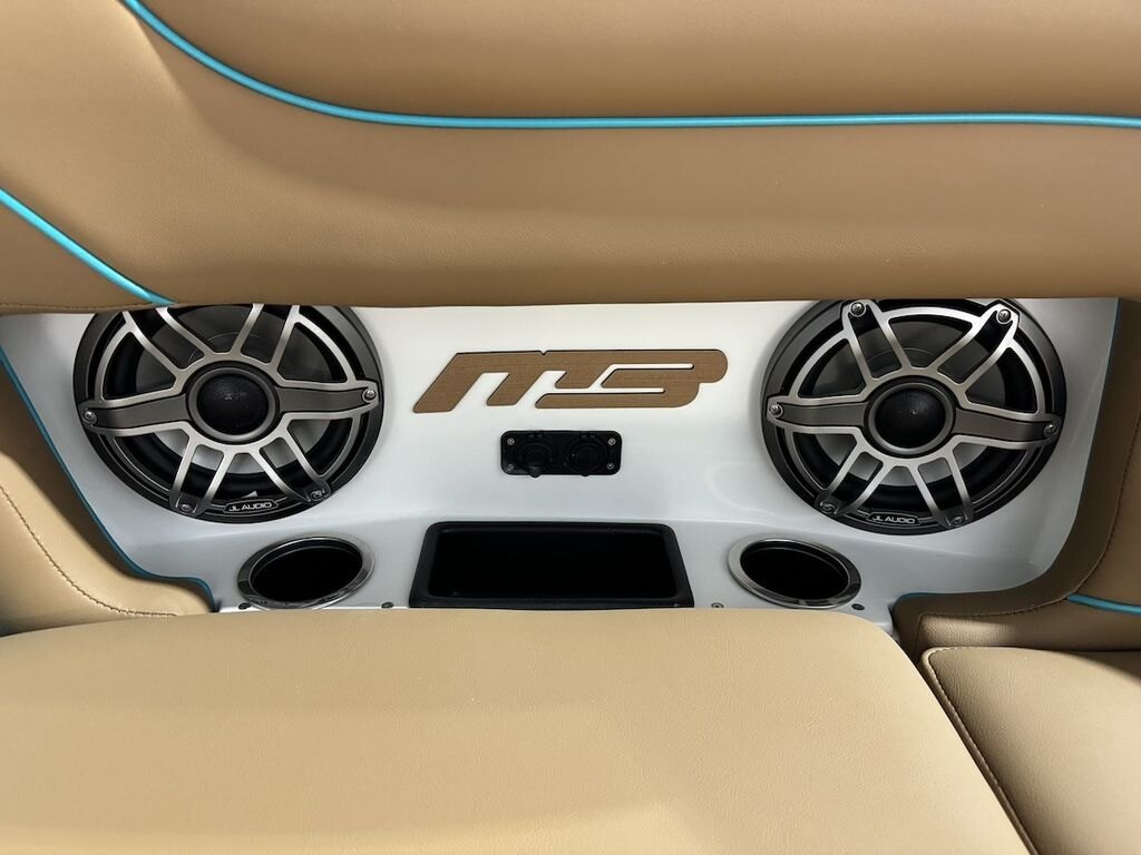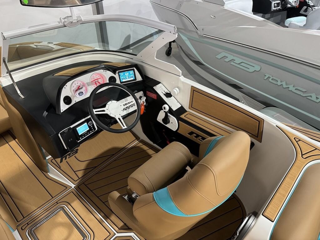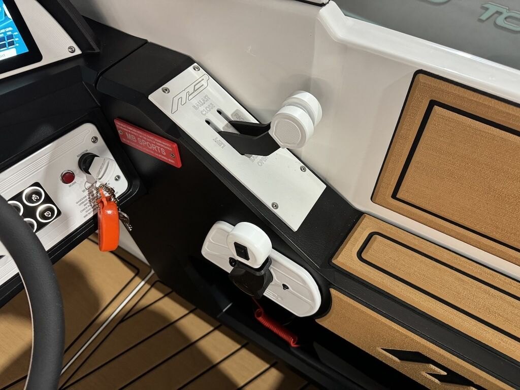 Boat Options Power Tower Upgraded Board Racks w/ Tower (PTM) - (Arctic White) Upgraded Screen W/ Speakers MB Switch Surf W/ Cav Plate Ballast - (Rear and Bow) Plug and Play - 2200lbs Subfloor - 1550lbs High Altitude Prop - 15X12.50 - .075 Pro Indmar Raptor 400 6.2L 350HP Flooring - Gator Step Plank Kit - Two Colour Option Top - Teak Bottom - Black Surf Lighting Docking Lights JL Audio 12” Subwoofer Upgrade (Replaces 10” Sub) JL Audio 8.8” Cockpit Speakers (Cockpit) JL Audio 6” Bow Speakers JL Audio 5Ch Amp JL Audio Transom Remote RGB Theatre Lighting Heater - Cabin (2 Snorkels) Heater - Drivers Seat Additional Pair Cleats Hatch Runway Trailer Hooks Hinged Seating Swim Step Ladder Surf Pipe Fender Clips Powder Coat - Frame - Arctic White Mirror - Arctic White Wings - Arctic White Racks - Arctic White Powder Coat - Interior Main - Arctic White Accent - Arctic White Other - Arctic White Exterior - Logo MB / Tomcat Base - Jet Black Insert - Arctic White Tower Main - Arctic White Panels - Arctic White Base - Arctic White Transom - No Colour