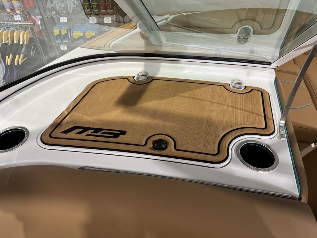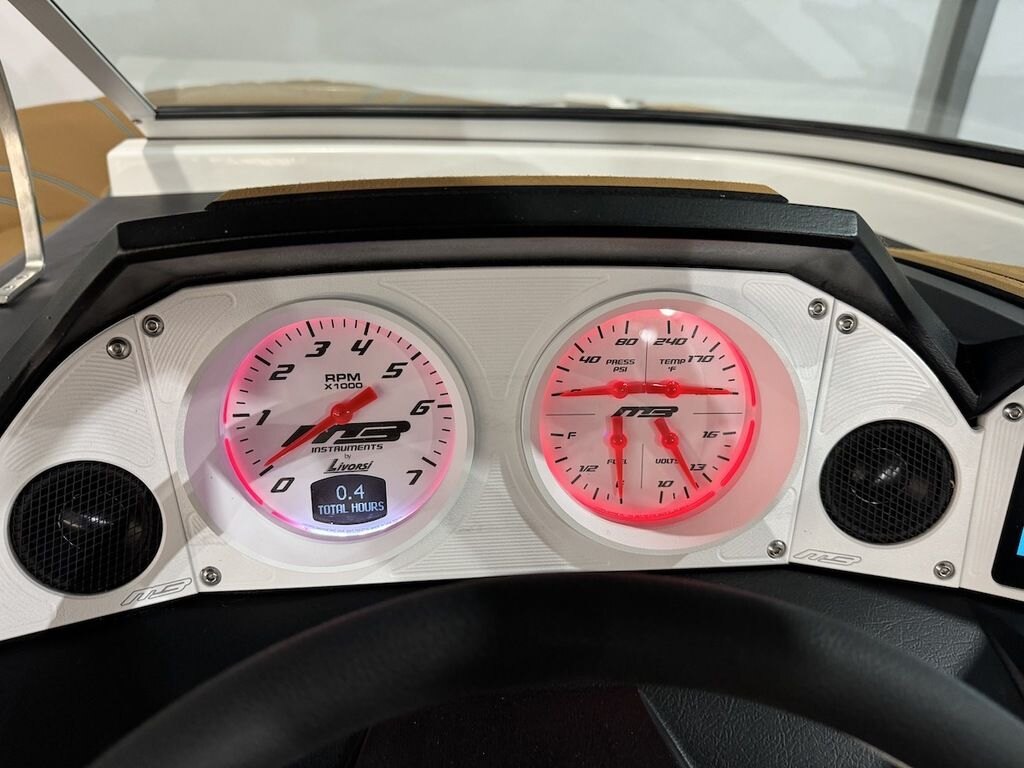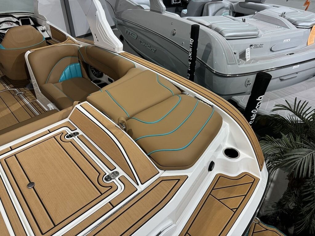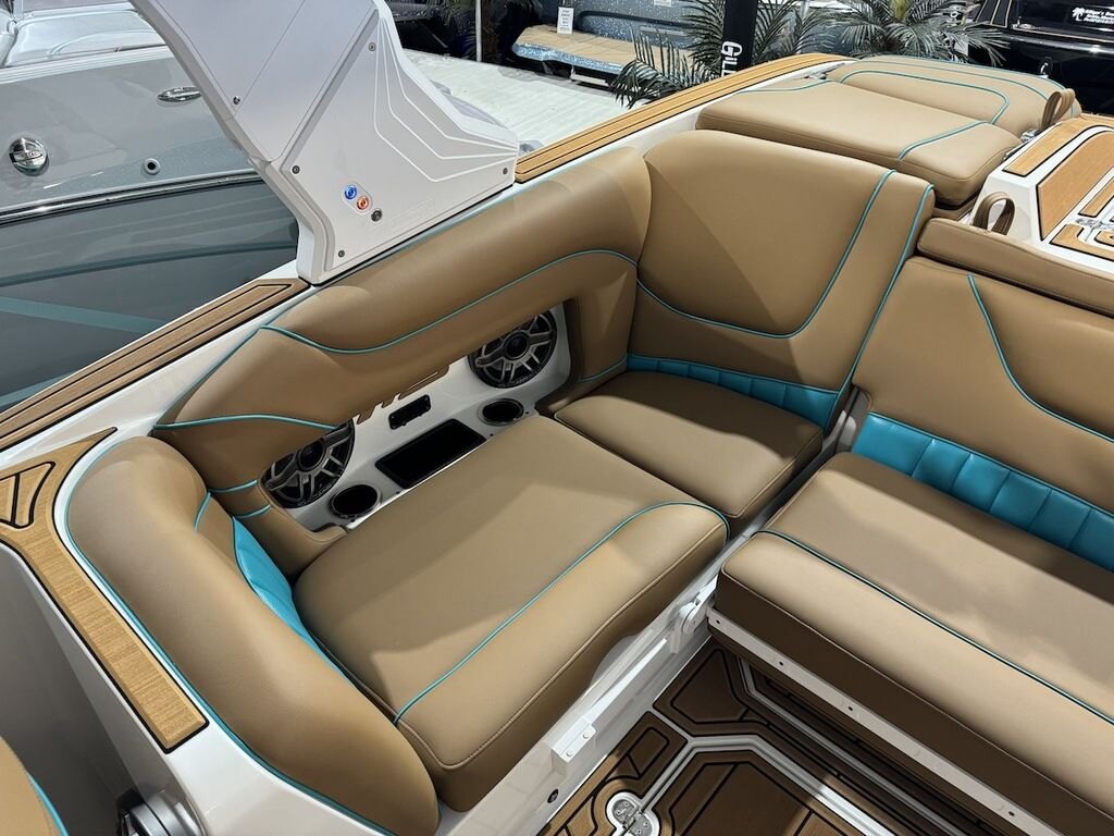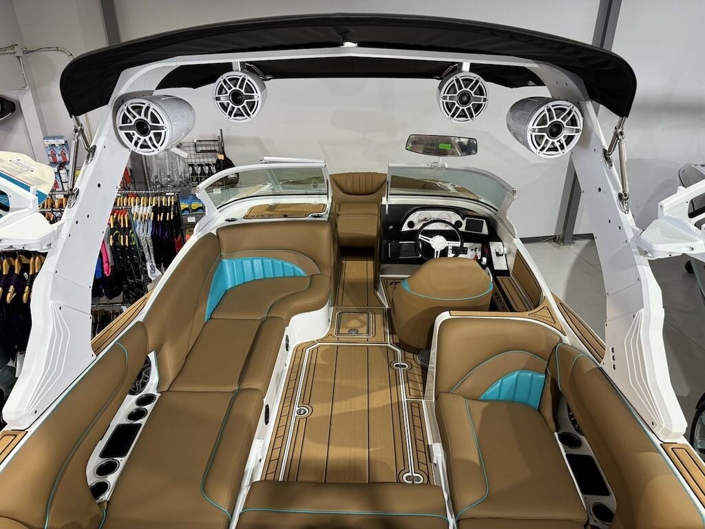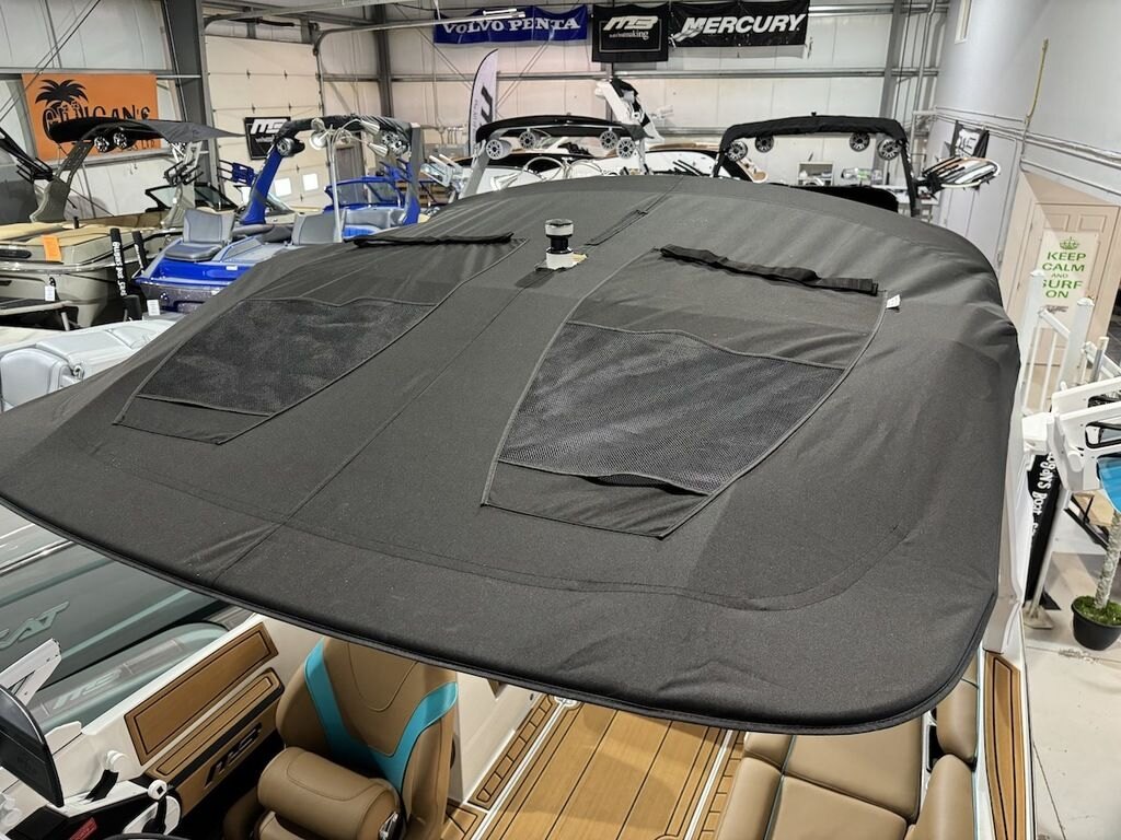Boat Options Power Tower Upgraded Board Racks w/ Tower (PTM) - (Arctic White) Upgraded Screen W/ Speakers MB Switch Surf W/ Cav Plate Ballast - (Rear and Bow) Plug and Play - 2200lbs Subfloor - 1550lbs High Altitude Prop - 15X12.50 - .075 Pro Indmar Raptor 400 6.2L 350HP Flooring - Gator Step Plank Kit - Two Colour Option Top - Teak Bottom - Black Surf Lighting Docking Lights JL Audio 12” Subwoofer Upgrade (Replaces 10” Sub) JL Audio 8.8” Cockpit Speakers (Cockpit) JL Audio 6” Bow Speakers JL Audio 5Ch Amp JL Audio Transom Remote RGB Theatre Lighting Heater - Cabin (2 Snorkels) Heater - Drivers Seat Additional Pair Cleats Hatch Runway Trailer Hooks Hinged Seating Swim Step Ladder Surf Pipe Fender Clips Powder Coat - Frame - Arctic White Mirror - Arctic White Wings - Arctic White Racks - Arctic White Powder Coat - Interior Main - Arctic White Accent - Arctic White Other - Arctic White Exterior - Logo MB / Tomcat Base - Jet Black Insert - Arctic White Tower Main - Arctic White Panels - Arctic White Base - Arctic White Transom - No Colour