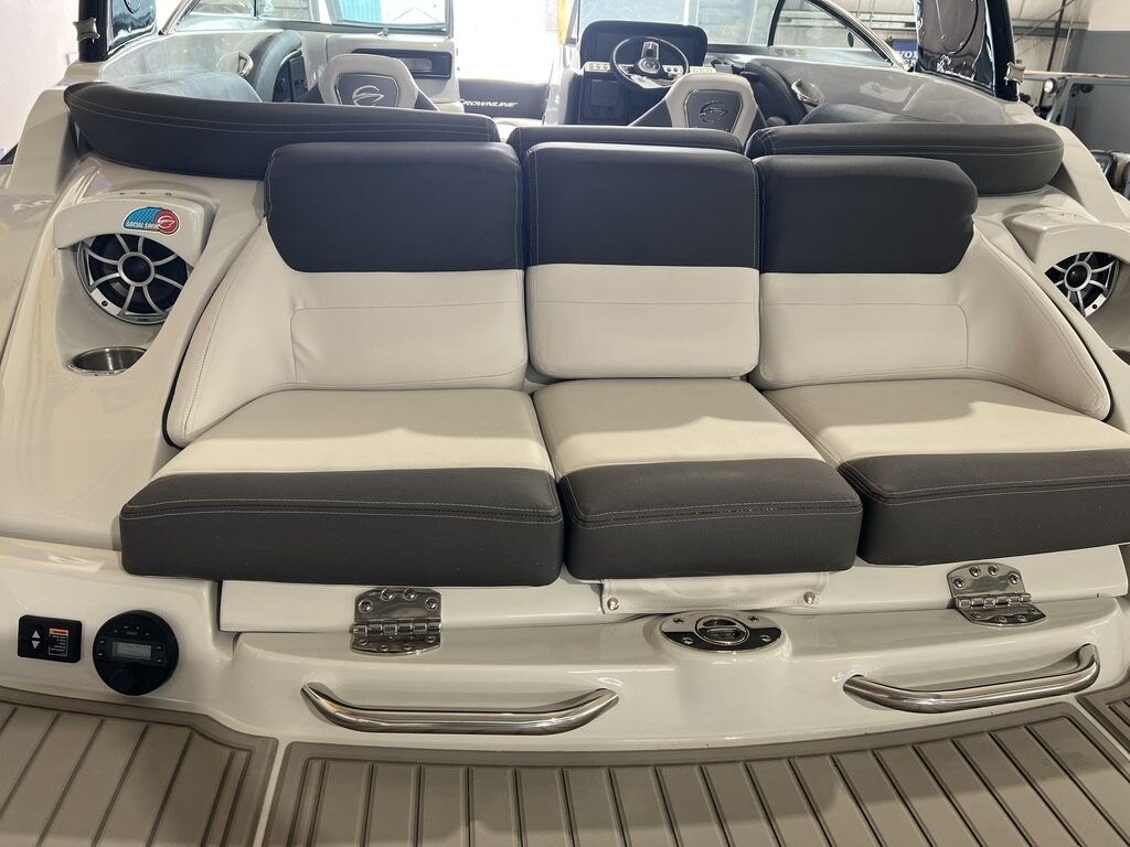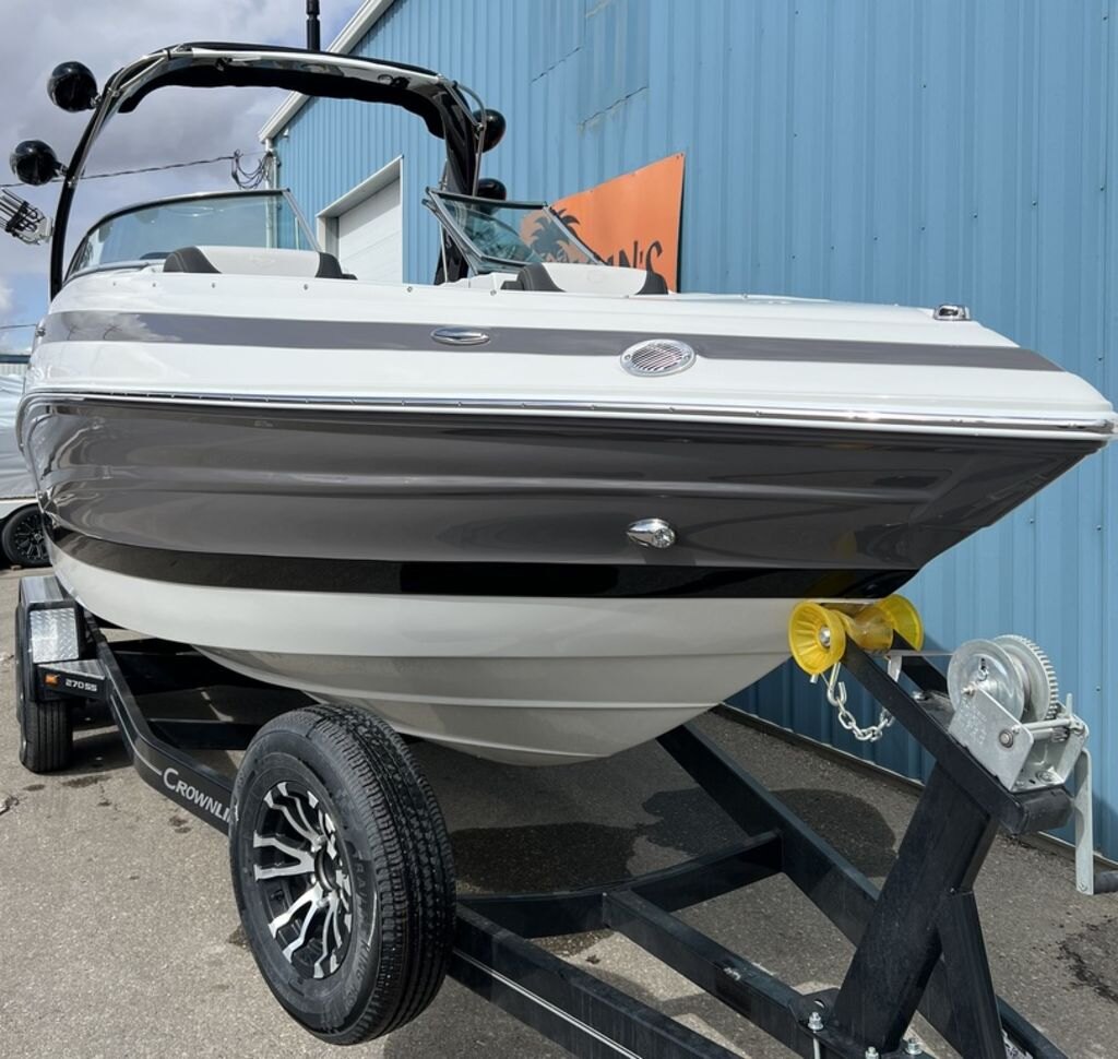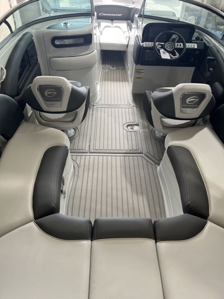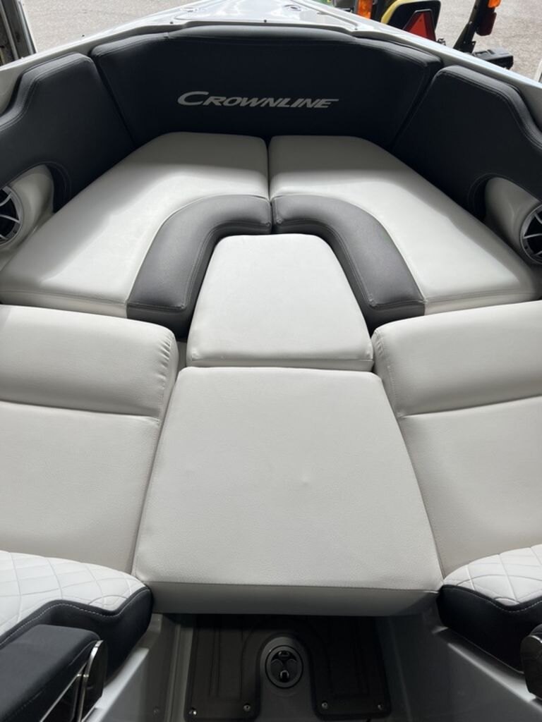 The passenger-friendly 270 SS features a roomy, U-shaped interior with plenty of space to spread out and relax. Prepare to enjoy incredible on-water times in the new Crownline 270 SS SURF with a design that provides a lot more real estate for all your family, friends and watersports gear. This boat excels at surfing, wakeboarding and tubing and provides a truly versatile, family-friendly experience every time. It’s equipped with twin 7” SURF touchscreens so you can always dial in the perfect wave. Options Include: Volvo Penta 380CE 6.2L with Forward Drive, Power Tower with Bimini Top, 1750 lbs quick connect ballast, Twin 7" Touchscreens, Electric Head, Docking Lights, Shower, Wet Sounds stereo with Tower Speakers, Social Swim Transom, Snap Covers, Dual Batteries, Tandem Trailer with spare.