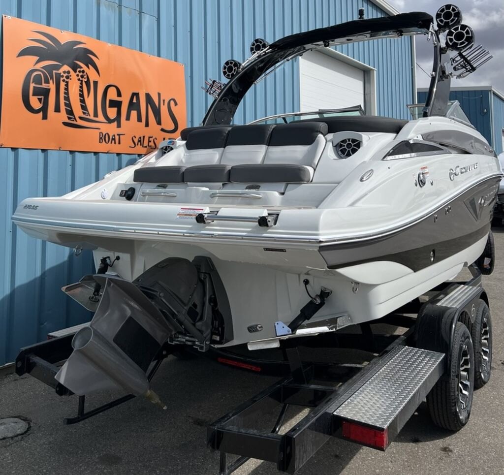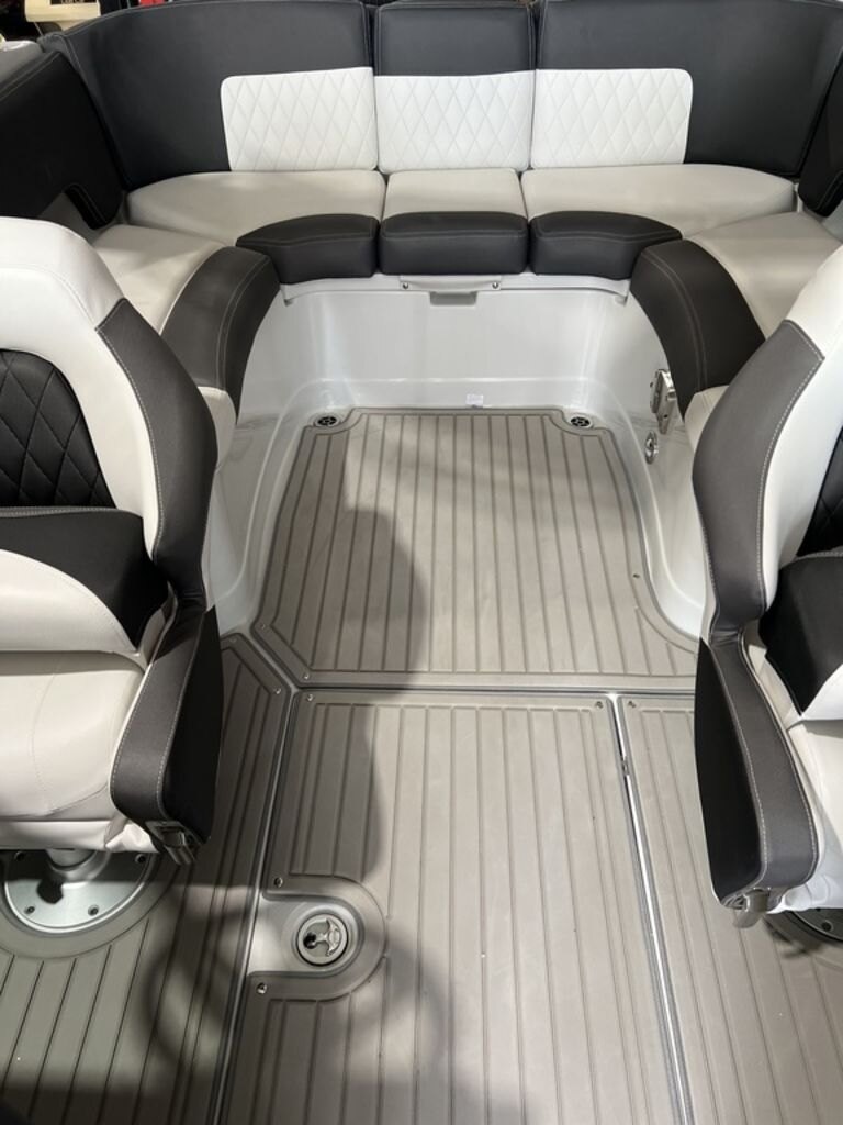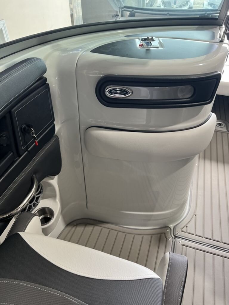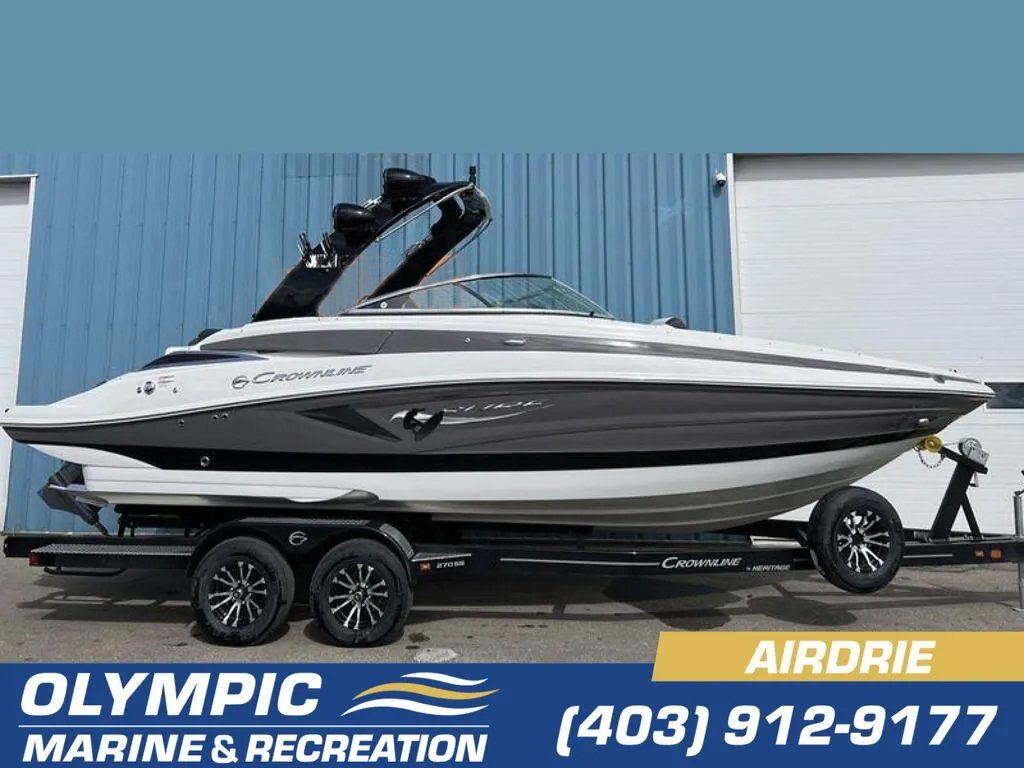 The passenger-friendly 270 SS features a roomy, U-shaped interior with plenty of space to spread out and relax. Prepare to enjoy incredible on-water times in the new Crownline 270 SS SURF with a design that provides a lot more real estate for all your family, friends and watersports gear. This boat excels at surfing, wakeboarding and tubing and provides a truly versatile, family-friendly experience every time. It’s equipped with twin 7” SURF touchscreens so you can always dial in the perfect wave. Options Include: Volvo Penta 380CE 6.2L with Forward Drive, Power Tower with Bimini Top, 1750 lbs quick connect ballast, Twin 7" Touchscreens, Electric Head, Docking Lights, Shower, Wet Sounds stereo with Tower Speakers, Social Swim Transom, Snap Covers, Dual Batteries, Tandem Trailer with spare.